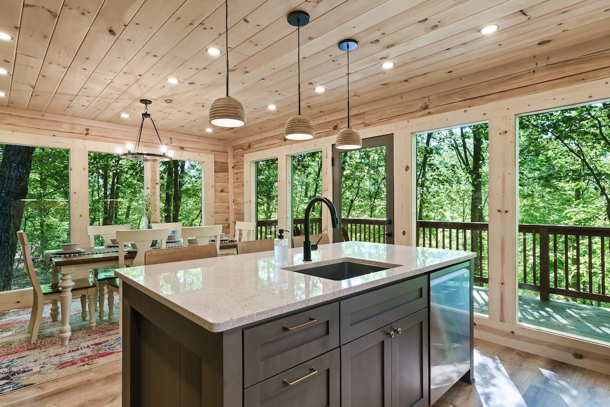 *Lux Treehouse Cabin*热水浴缸|街机|可携带宠物入住