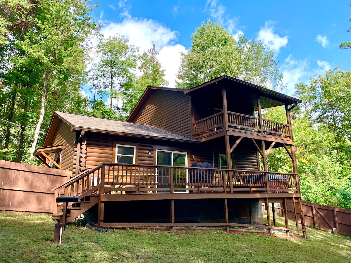 PET FRIENDLY — bring your furry friends along! Check out our pet policy under the house rules. Log Home located only minutes from Pigeon Forge and Gatlinburg. This 3BR/2BA cabin w/fenced-in backyard offers complete privacy. Relax with family and friends on the deck, fire up the grill, and roast marshmallows by the fire pit under the stunning night sky. Only 15 minutes away from Dollywood & all the attractions the Great Smokies offer! Cabin has everything u need for perfect private getaway!