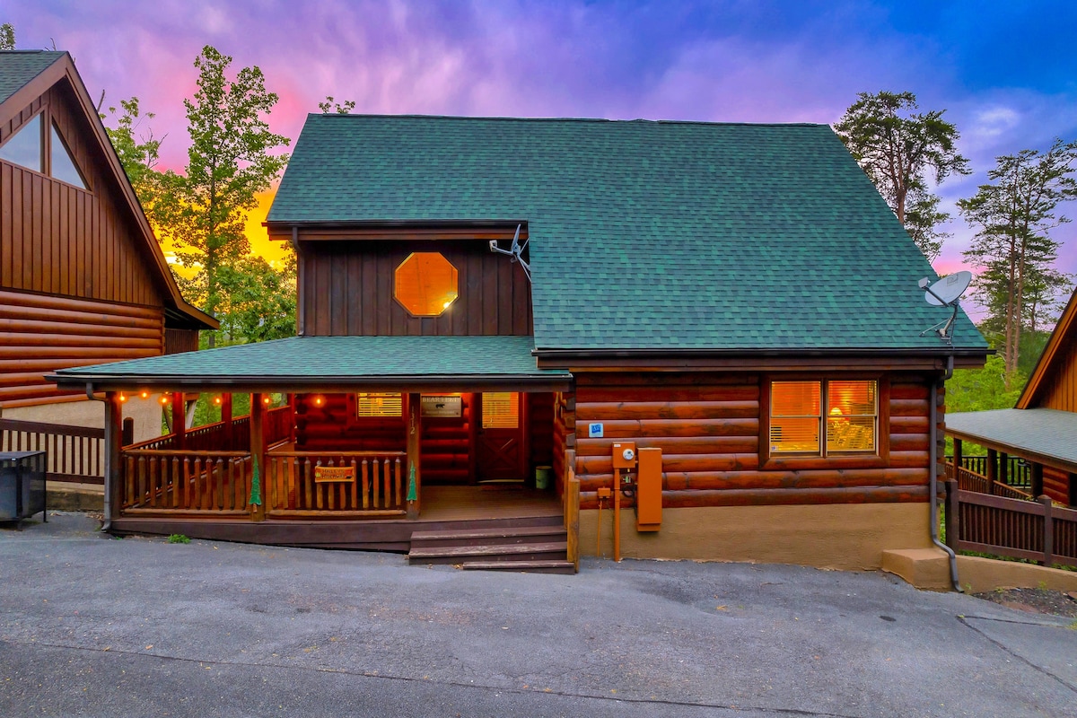 . Outdoor movie theater . Hot tub & Fire pit . Game Room w/ billiard table, ping pong table & arcade games . LOCATION! Centrally located in Pigeon Forge! . 5 min drive to Pigeon Forge Parkway (restaurants, shops & attractions) . 15 min drive to Dollywood . 15 min drive to the Great Smoky Mountains National Park entrance . 3 bedrooms / 3 baths . Sleeps up to 12 guests . Parking for 5 vehicles . Paved roads / No winding roads . Fully equipped kitchen . All TV’s with 125+ channels, High Speed WIFI