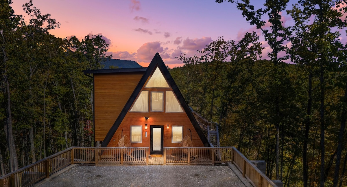 豪华树顶度假屋!热水浴缸、火坑和景观!