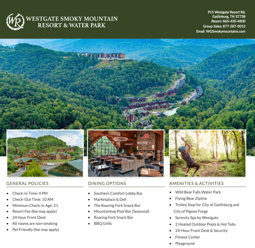 Discover a Gatlinburg resort that goes beyond sunset views and hues. Experience wildlife and nature at Westgate Smoky Mountain Resort & Water Park in Gatlinburg, Tennessee. Located within minutes of Great Smoky Mountains National Park, our resort is the perfect family destination with our spa, mini golf, and onsite food & beverage options. Make the most of your vacation with multi-day admission or discounted tickets for our indoor waterpark.