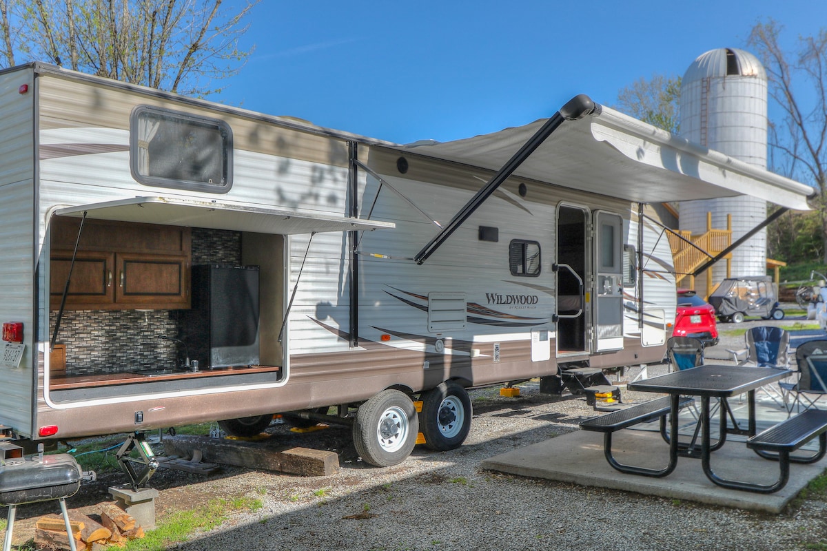 Reconnect with nature at this unforgettable escape. Queen of the Hill offers all of the amazing amenities for a bargain price. Located just minutes from the must-see attractions in the area but yet far enough from the hustle of the tourist town. With prices on the rise, it's an absolute must to pick the perfect spot that will accommodate your family during your vacation to the Smokies. Come and enjoy some piece and quiet at our modern, well equipped, beautiful camper!!!