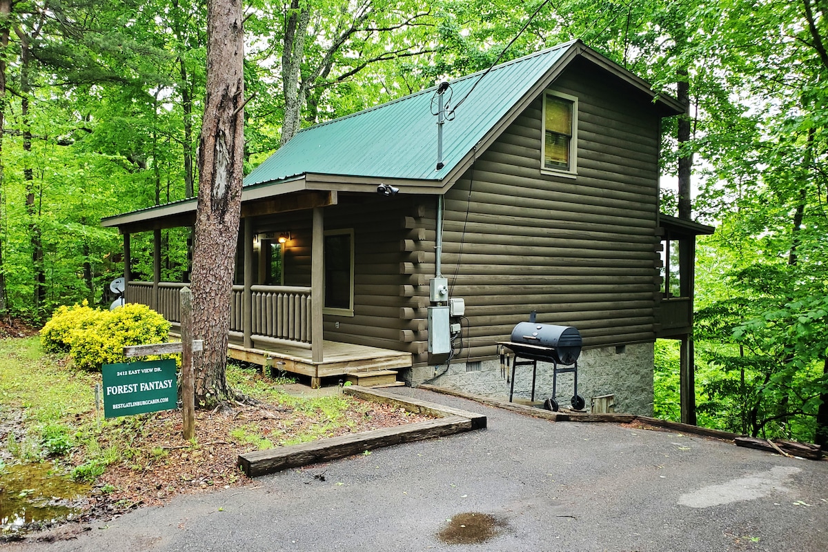 Forest Fantasy is a cozy 2 story, 2 bed log cabin nestled in The Smoky Mountains of Gatlinburg/Pigeon Forge Tennessee in the beautiful Sky Harbor Resort, with breath taking views and surrounded by the mountainous forest terrain. Enter dates for an accurate nightly rate. Be prepared to sit back and enjoy the beauty of The Smoky Mountains that surrounds Forest Fantasy. The cabin is the perfect location to all attractions both cities have to offer, including The Great Smoky Mountain National Park.
