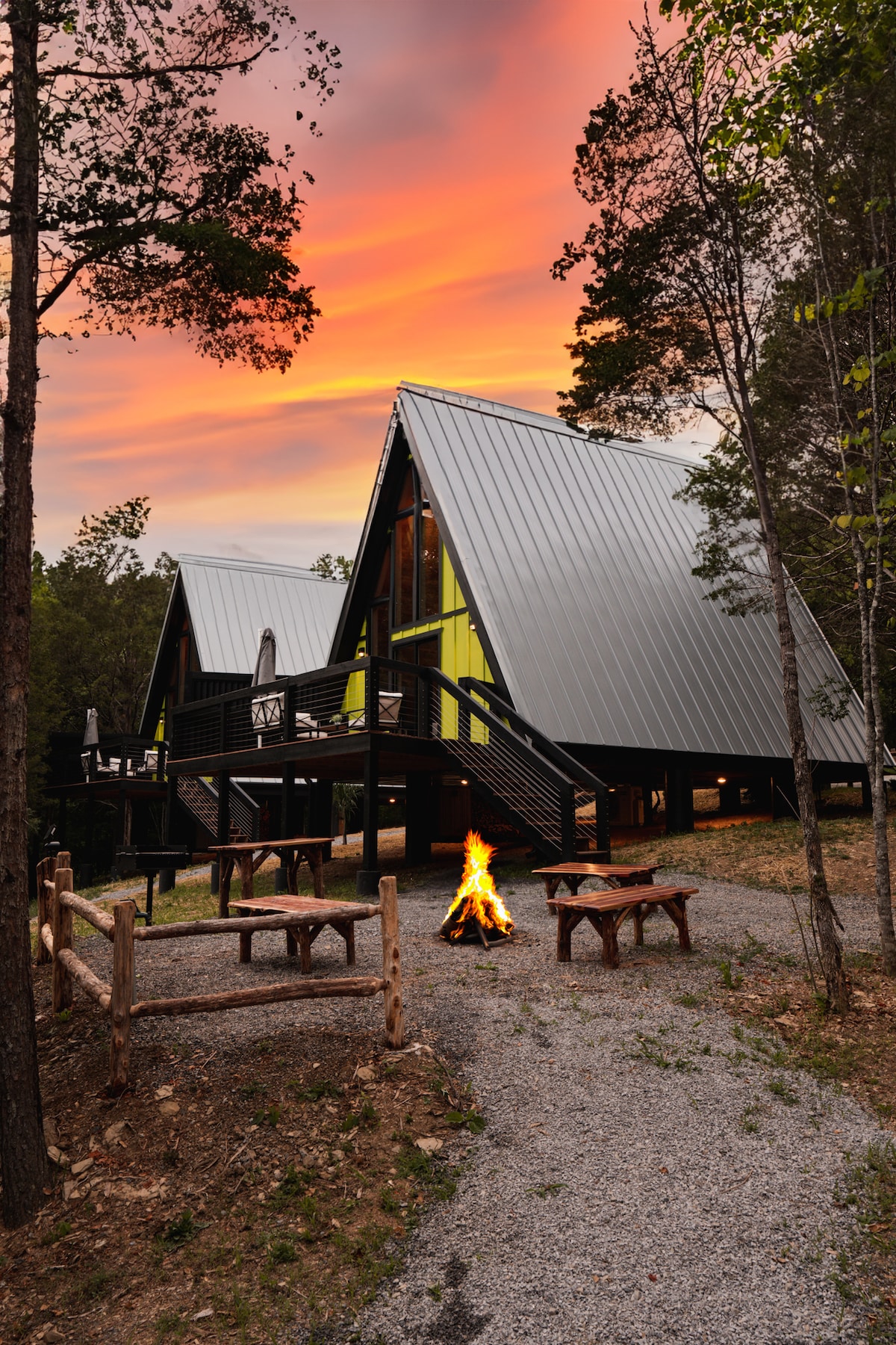 Escape to this eco-friendly A-Frame retreat, just minutes to GSMNP! Enjoy included activities like hiking, pedal boating, kayaking, and fishing on a private 2-acre stocked lake. Relax with EV charging, a cozy fire pit, charcoal grill, fully equipped kitchen, and in-unit washer/dryer. Plus, a kid’s play area, fishing docks, trails, and firewood are yours during your stay. 1.5 miles to Soaky Mountain Water Park. Sleeps up to 4 guests—no pets, please! Extra guests need approval and a small fee.