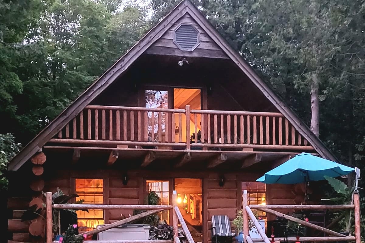 Tucked away between the hills of Reaboro Ontario, this 175+ year old pioneer log cabin has been brought back to life with the comfort of all new modern amenities, while still keeping the rich historic character of its past. The cabin homestead was crafted in 1847, before Canada was a country. With your significant other, family or friends, come cozy up to the fire, soak in the hot tub and enjoy swimming in the spring fed pond. Board games and movies are provided for your entertainment.
