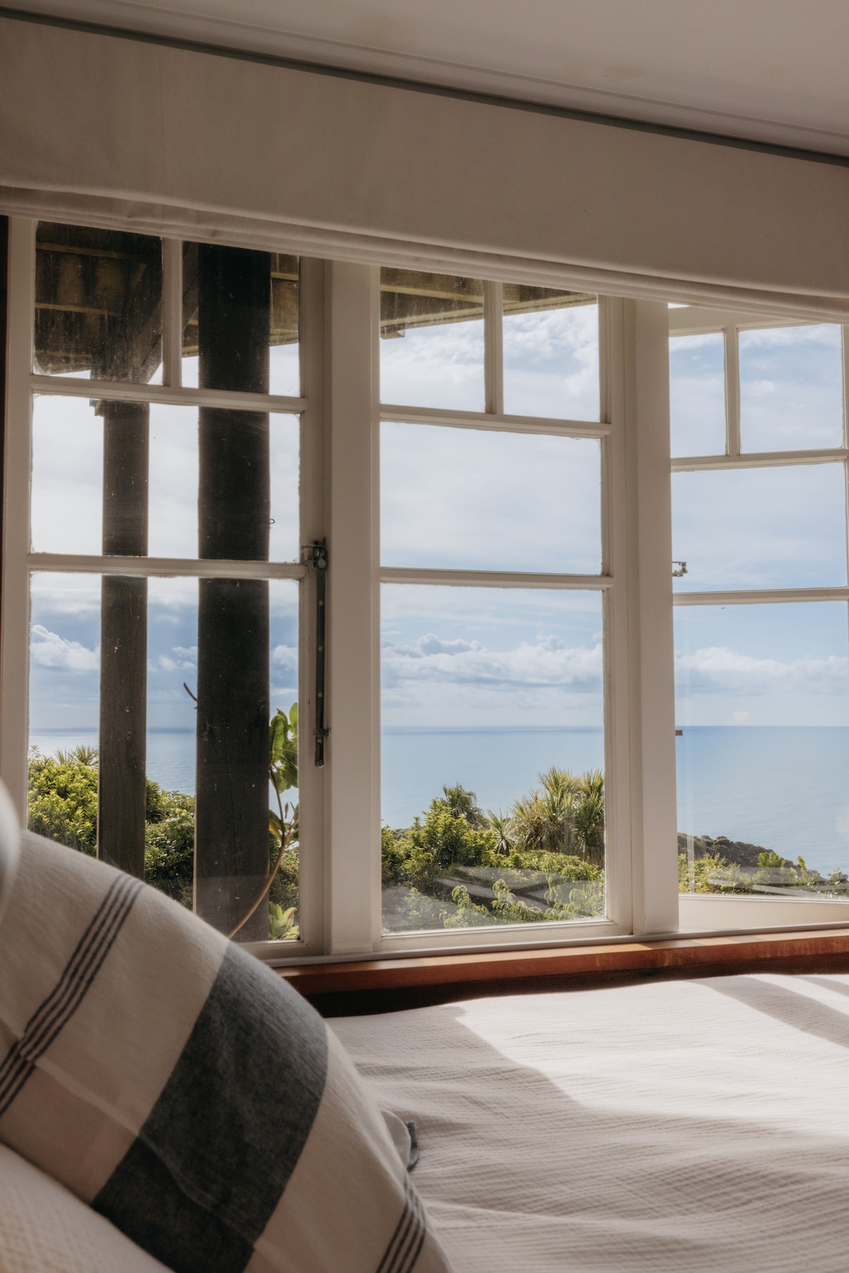 Prime spot across road from Piha's dramatic surf beach, at quiet north end. Large sunny decks, wonderful indoor-outdoor living, nestled amongst beautiful pohutukawas , comfortable home-away-from-home, recently-renovated kitchen, most mod-cons, with a kiwi 'bachy' feel. Surf across road, easy access to North Piha Surf patrol area for swimming; walks, wine, games & books by fire in winter. View surf from your pillow upstairs in master bedroom !