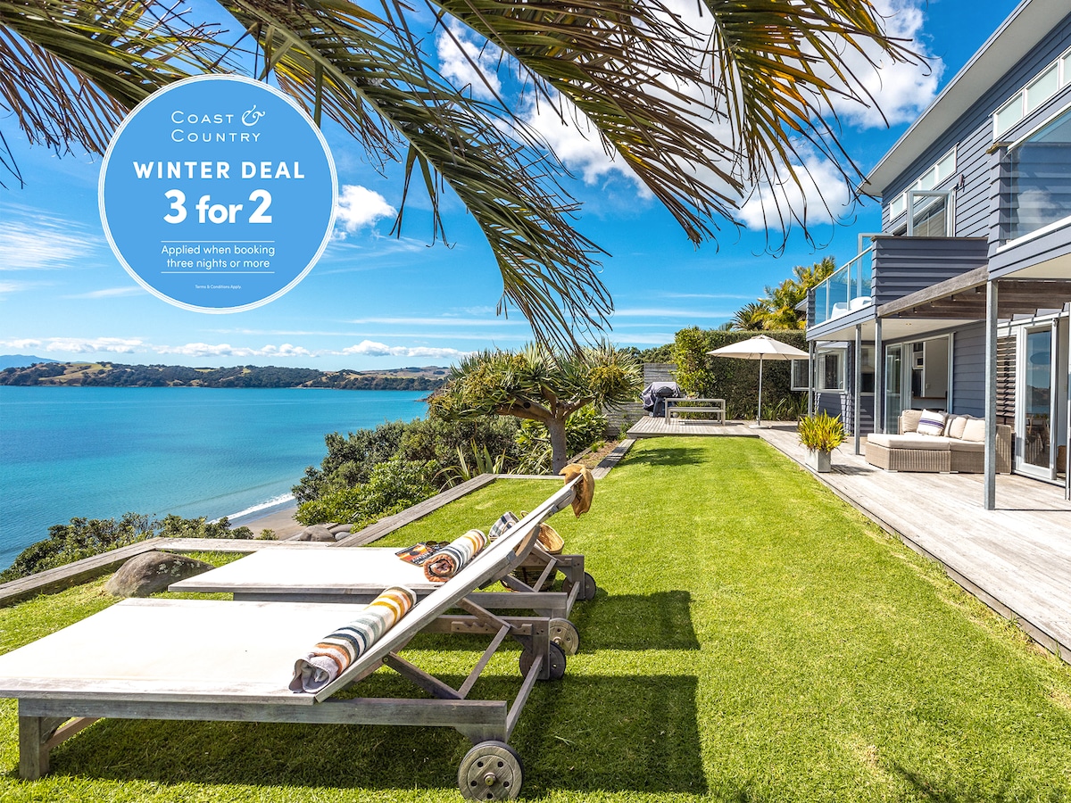 Waiheke Island度假村,宽敞海景,露台,私人!