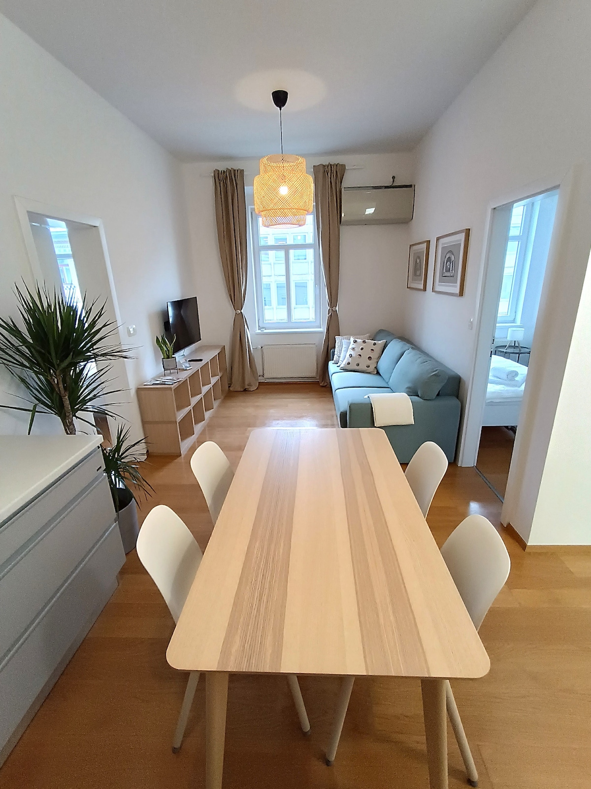 Newly renovated in 2025. Floor heating. Ideal for 4, comfortable for 6. It is a ground floor apartment (55m2) with its own entrance. It has free private parking, high speed WIFI&TV, washer/dryer, fully equipped kitchen, two bedrooms with King size beds (180x200), living room with a sofa/double bed , a bathroom with shower & terrace with table and chairs. It is located in a quiet neighborhood - Hofer/Aldi is 600m away, bus directly linked to city center 300m . 5min or 3km to city center by car.