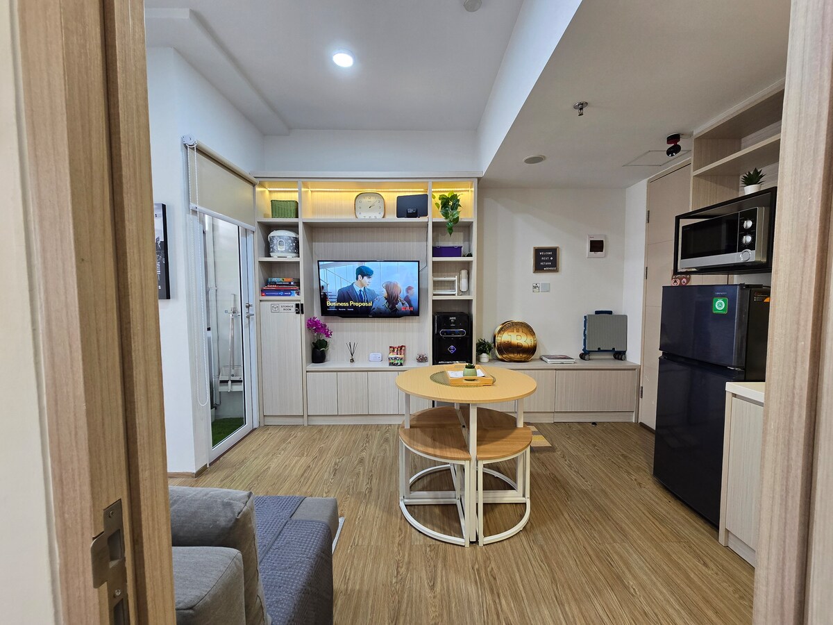 Enjoy a stylish experience at this centrally-located place. Green Sedayu Apartment is integrated with Green Sedayu Mall with lots of facilities inside. It is also quite near to the airport. Step into your cozy retreat and be greeted by a charming private balcony and a large window showcasing stunning city views. Relax and enjoy your stay! (Pool and gym are available for minimum 6 months rental 🙏)
