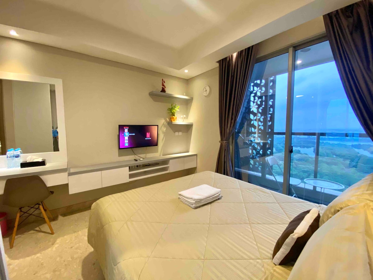 We are located at Tower Atlantic, Gold Apartment PIK. If you are looking for a long stay, our place is suitable because : 1. You can cook 2. Very clean & hygienic. We change all the cover, vacum, mop the floor with hot water, and disinfectant. 3. Best view w/ Mangrove view 4. 15 mnt by car to the Airport 5. 10 mnt walking distance to fresh market and 15 mnt to PIK Mall or China Town. PIK is the Modern City in North Jkt. There are 3 golf courses, plenty of places to shop, and culinary