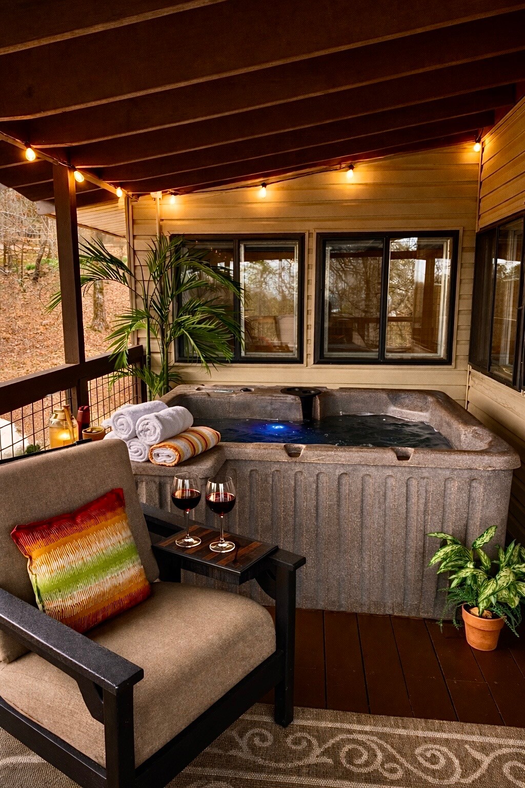 带热水浴缸的河畔房屋