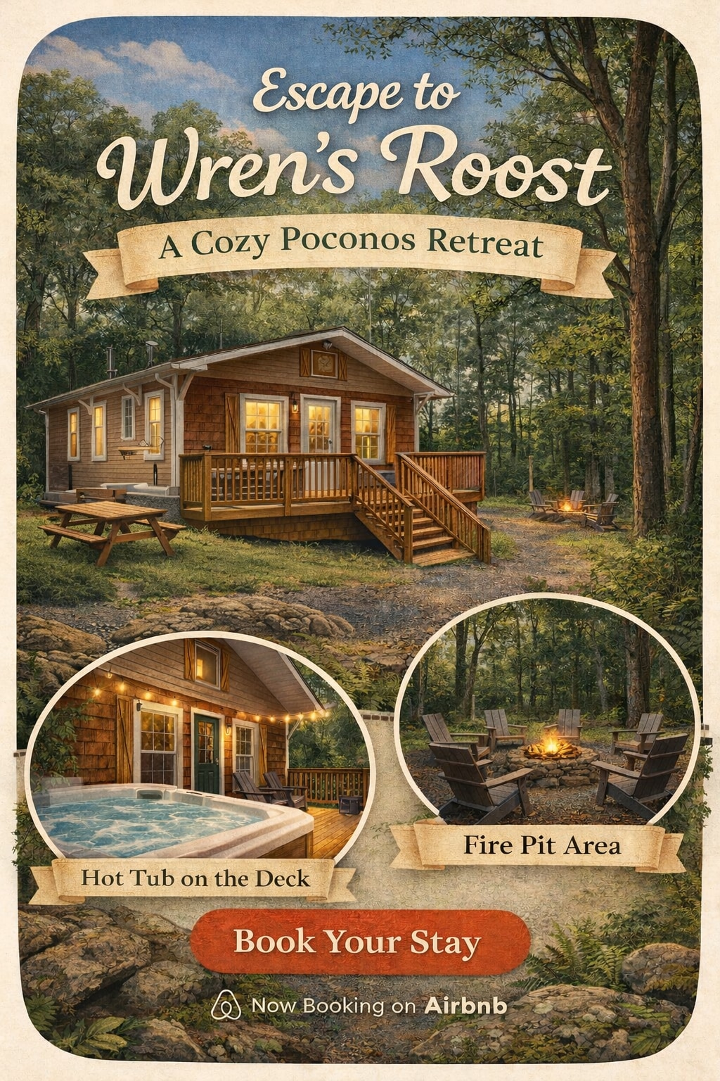 Escape to our charming cabin in the beautiful Poconos, just a stone's throw away from Promised Land State Park. Discover modern comforts, a fully equipped kitchen, and a cozy queen-size bed. Immerse yourself in outdoor adventures like hiking, fishing, and more. And when winter arrives, hit the nearby ski mountains for exhilarating slopes. Experience an unforgettable getaway in all seasons at our Poconos cabin!