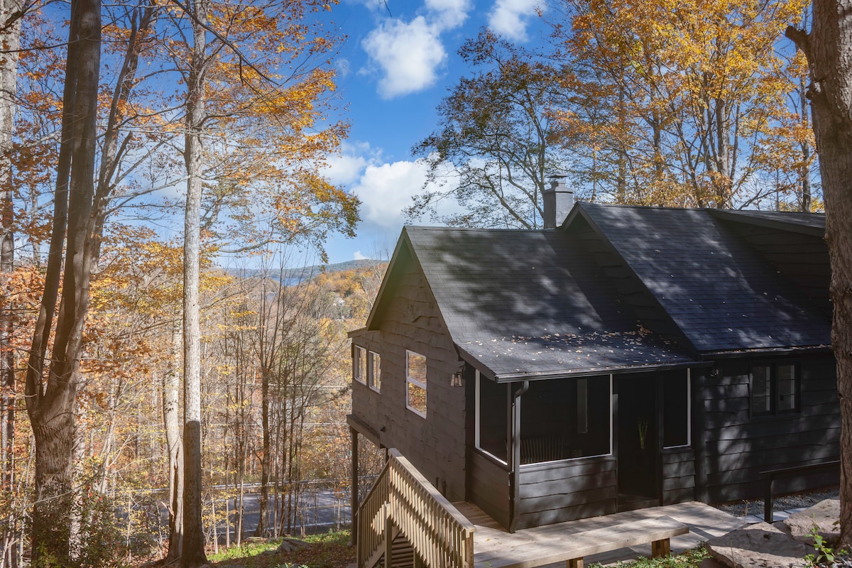 Escape to the designer Black Cabin near Bushkill Falls—your perfect mountain getaway. Surrounded by forest and within walking distance to peaceful creek access for kayaking or fishing, this stylish all black retreat sleeps 6 with two queen bedrooms &a cozy loft. Enjoy the open kitchen with high-end appliances, a warm pellet stove & wraparound deck with gas firepit and outdoor TV. Relax in the wood-fired hot tub or by the firepit under the stars. Only 20 min to Shawnee Mountain & Bushkill Falls.