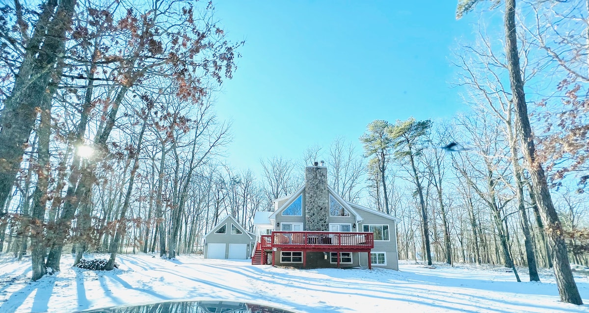 Looking for a place with peace and quiet, spectacular wildlife, tons of amenities, and plenty of space for your friends and family? Look no further. This newly renovated, pet friendly 4 BR log home offers the classic Pocono Mountains experience. You'll have 4 acres to explore including heated pool, hot tub, backyard, firepit, dog run, zen garden, picnic area, hiking trail, and more. Nestled in the heart of the Poconos, you'll enjoy nature while being just minutes to all major attractions.