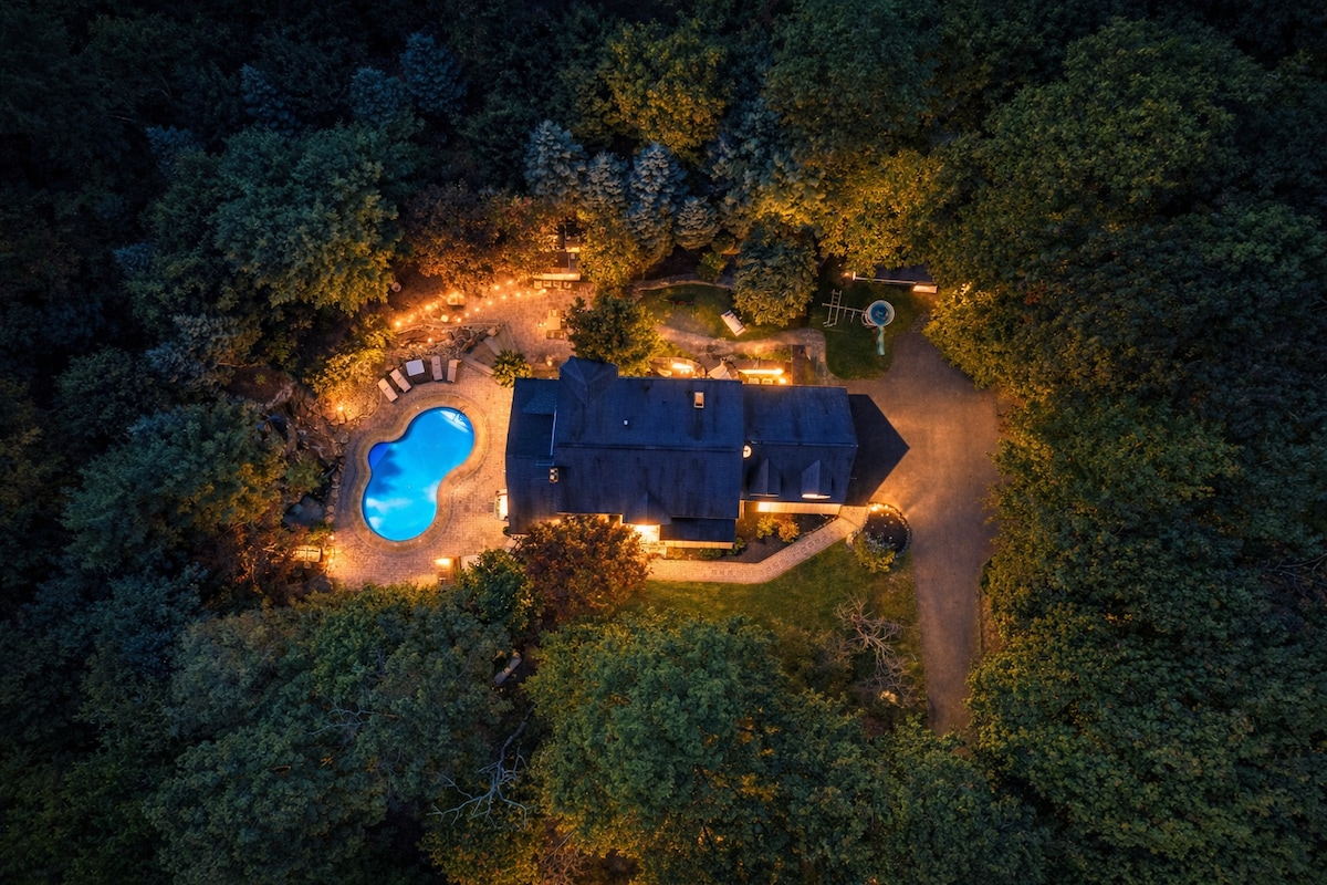 私人2英亩滑雪和湖畔小屋|泳池+火坑