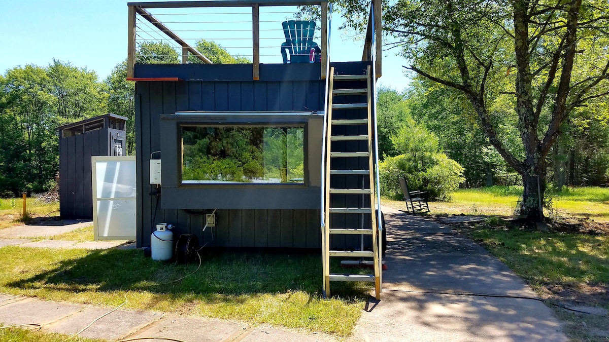 If you are looking for an experience that combines comfort and modern amenities, closeness to nature, and ecological soundness, then look no further. Our modern cube-house is situated in a private meadow on our property and includes a kitchen area, queen-size bed, outdoor hot shower rooftop deck for stargazing, and private composting outhouse house. Cell phone phone service is available through Verizon and AT&T. T-Mobile is hit-or-miss.