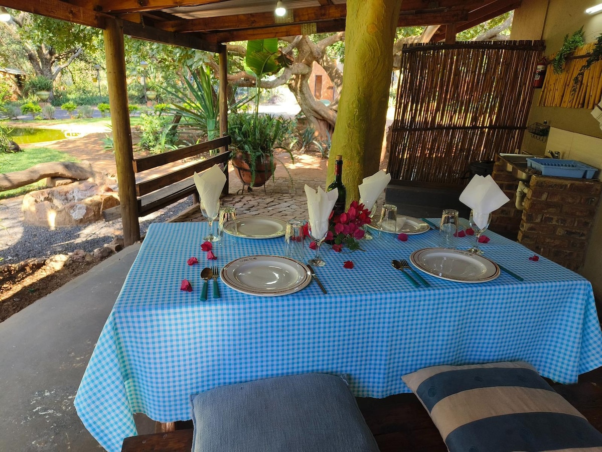 Romantic Off‑Grid Escape for Two Nestled in the heart of the Magaliesberg Biosphere, this stylish self‑catering chalet offers couples a serene retreat just 90 minutes from the city. Surrounded by pristine bush and birdlife, it’s the perfect hideaway to reconnect, relax, and rejuvenate. Solar power provides lights and phone charging, while gas ensures hot showers and cooking.