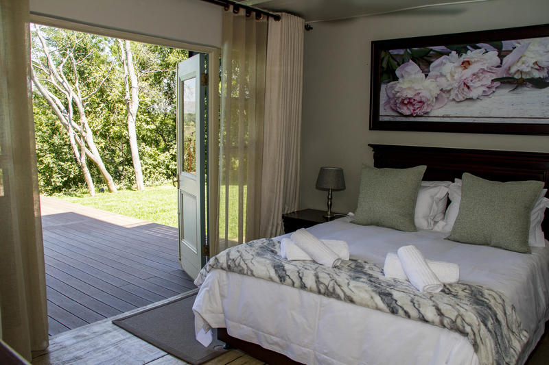 The deluxe queen is cozy, slightly smaller than our Premier King Rooms, but it offers a range of comforts designed for a relaxing stay. It is equipped with air-conditioning & ceiling fan to ensure a pleasant temperature. Guests can enjoy a shower, as well as in-room amenities such as a bar fridge and DStv & TV, along with tea and coffee making facilities. The room features doors that open directly to the pool, providing easy access, and boasts beautiful views of the river.