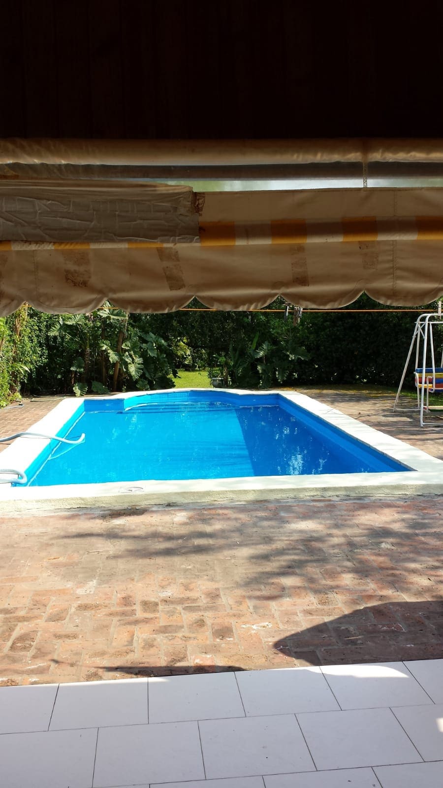 Chalet en zona tranquila y segura de San Isidro. Casa con pileta (alberca) y parrilla. Dos habitaciones. Parada de colectivos a 350 mts. Equipada con horno, horno eléctrico, microondas, parrilla eléctrica, pava eléctrica, lavarropas, dos TV, aire acondicionado.