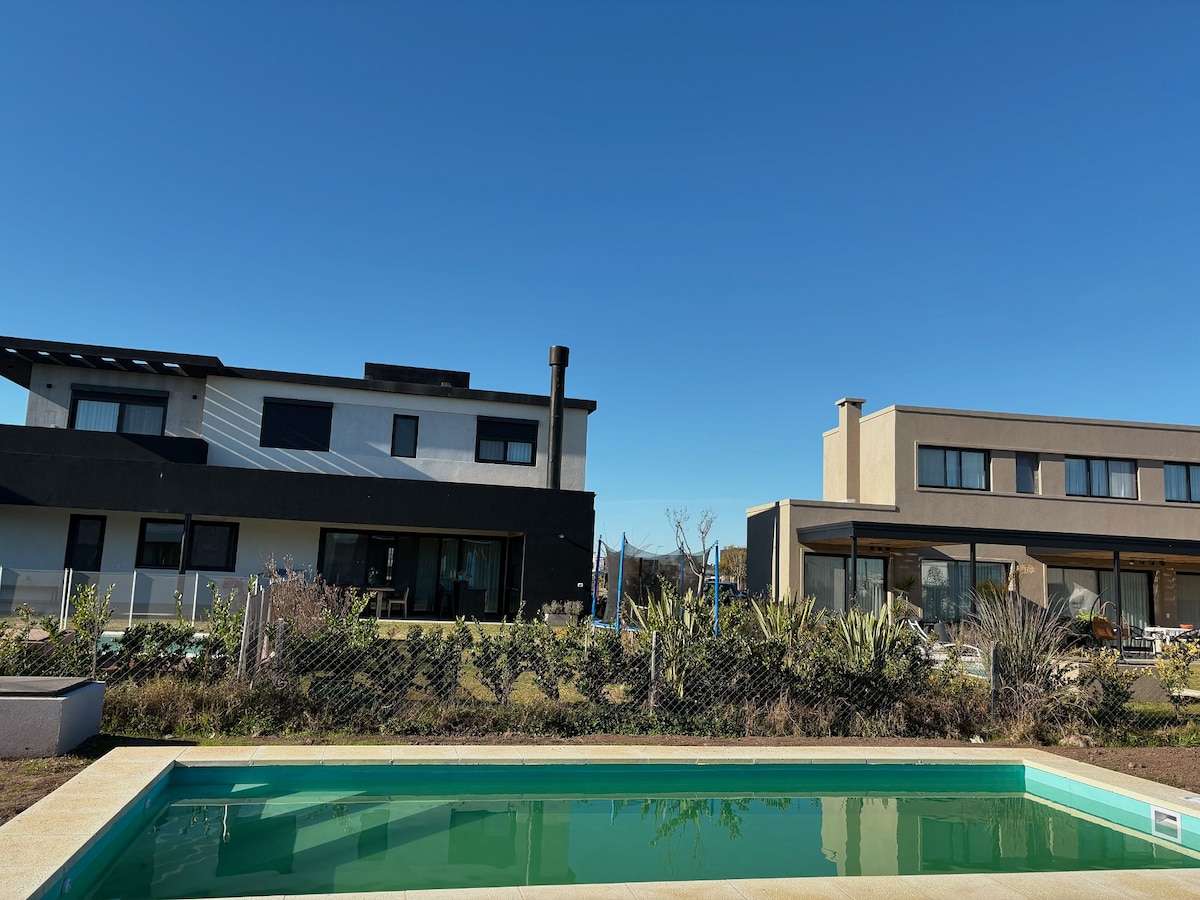 Relax with the whole family in this quiet accommodation. Located in one of the best country clubs in Argentina, in a busy area and only 40 minutes from downtown. A unique experience. Central air conditioning hot / cold. Illuminated and heated pool. Golf. Tennis. Volleyball, Soccer, Gym, Market, Restaurant, Bar, etc.