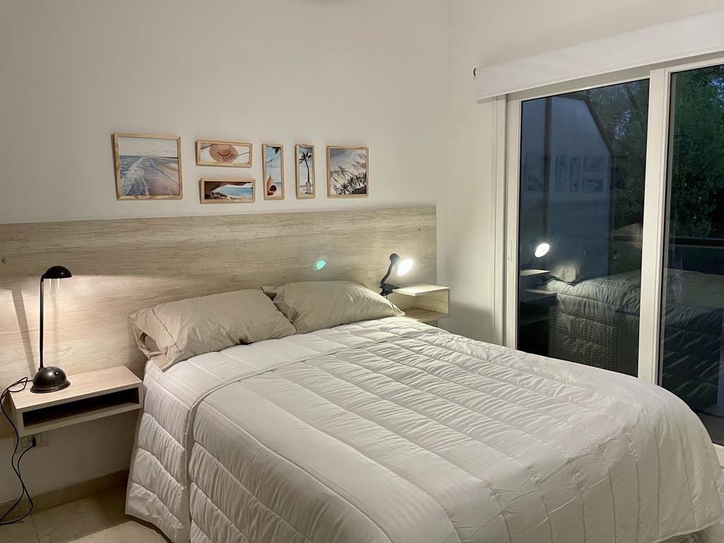 The residential complex Campus Vista has 24-7 private security, a sauna, a heated indoor pool, outdoor pool, fully equipped gym, fire pit, terrace with panoramic views, covered parking spot. It features: queen bed, sofa bed, spacious private terrace with a fire pit with a grill, a covered parking spot. Immerse yourself in a relaxing experience located in Pilar, in front of the Austral Campus and 300 meters from its entrance. It's an 8' walk or a 2' drive to the IAE and Hospital Austral.
