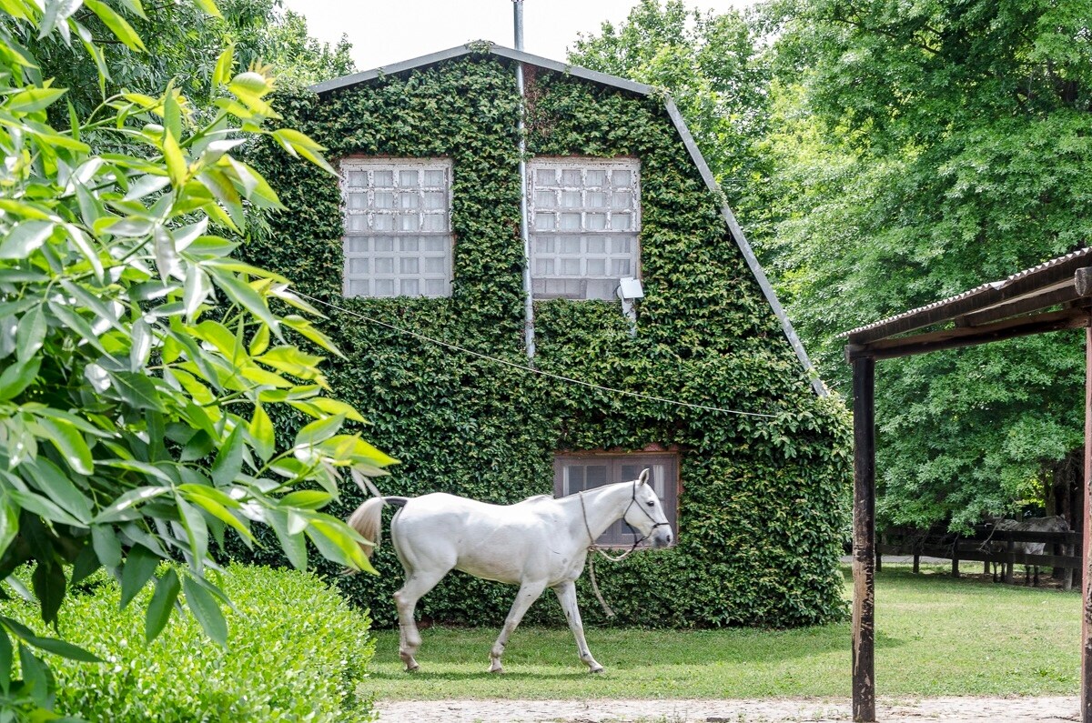 la casita esta ubicada en una caballeriza de caballos de polo, esta rodeada de caballos y de los trabajos diarios con ellos, es para los amantes de caballos y todo lo referido a ellos, el lugar es muy tranquilo , da la sensación de estar en el campo pero esta a 700 metros de un centro comercial con supermercado.