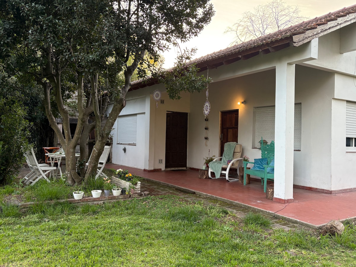 Un lugar para relajarse, hacer tu asado en familia, comer al aire libre, conectándote con la naturaleza. Descansar, jugar, pasar tiempo en familia. 700m2 de parque, árboles canto de pajaritos. Early check in o late check out, consultar.