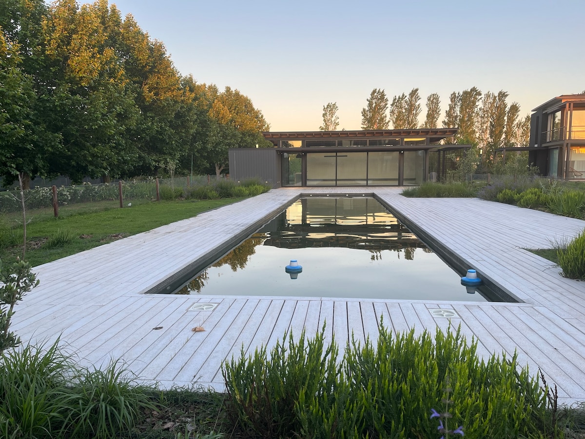 located in a private neighborhood and inaugurated in March 2022, features a distinctive mid-century modern design. includes cold/heat air conditioning in all rooms and radiant floor heating. double-glazed windows. The gallery offers breathtaking sunsets thanks to its Northwest orientation. The garden has access to a large lagoon. The suite is equipped with a California king bed and premium mattresses. ::Please note that events, pets, and extra guests are not permitted.
