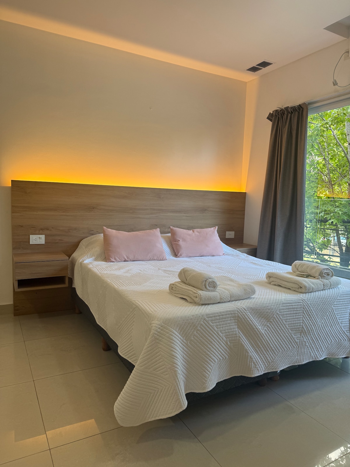 Golf y relax. Relajate en este monoambiente único y tranquilo. Disfruta de unos días de golf, o paseos y caminatas, inmerso en el verde de las canchas de Golf. Departamento totalmente equipado con exquisito buen gusto. Wifi. Cama Queen y sofá cama doble. Tostadora, microondas. Vista al golf, 2 piscinas.Cochera cubierta. Laundry. Canchas de golf, diseñadas por The Ronald Fream Plan USA, 27 hoyos. Un oasis cerca de Capital