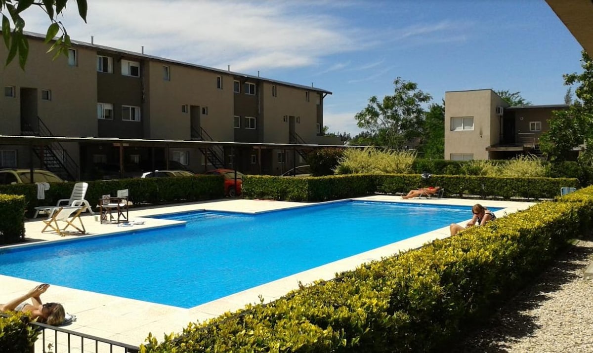 Apart moderno con cochera privada. Seguridad y portería 24hs. Fácil acceso a los complejos linderos así como también a la propiedad misma. Equipamiento completo del depto. Servicio de lavarropas en "laundry room". Pileta. Gimnasio. Wi-fi. TV de 56' con Chromecast. Cocina con horno eléctrico, pava eléctrica, licuadora, etc. Secador de pelo. Ropa blanca de cama y baño. Cuenta con sillón cama.