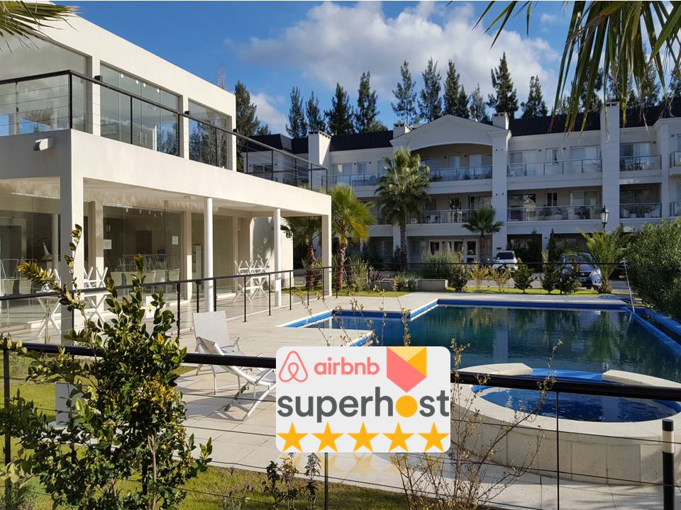 Alojamiento de diseño, único y tranquilo. Vas a poder relajarte en nuestro jardín con una hermosa piscina, contemplarla desde el living o la galería. Preparar tus comidas favoritas en una super cocina o jugar o mirar TV en un lindo play-room. Ubicada en el exclusivo barrio de Golfers, donde encontrarás las mejores arboledas y la combinación perfecta de tranquilidad y deporte: tenis, pádel, golf, polo, fútbol ¡y mucho más!