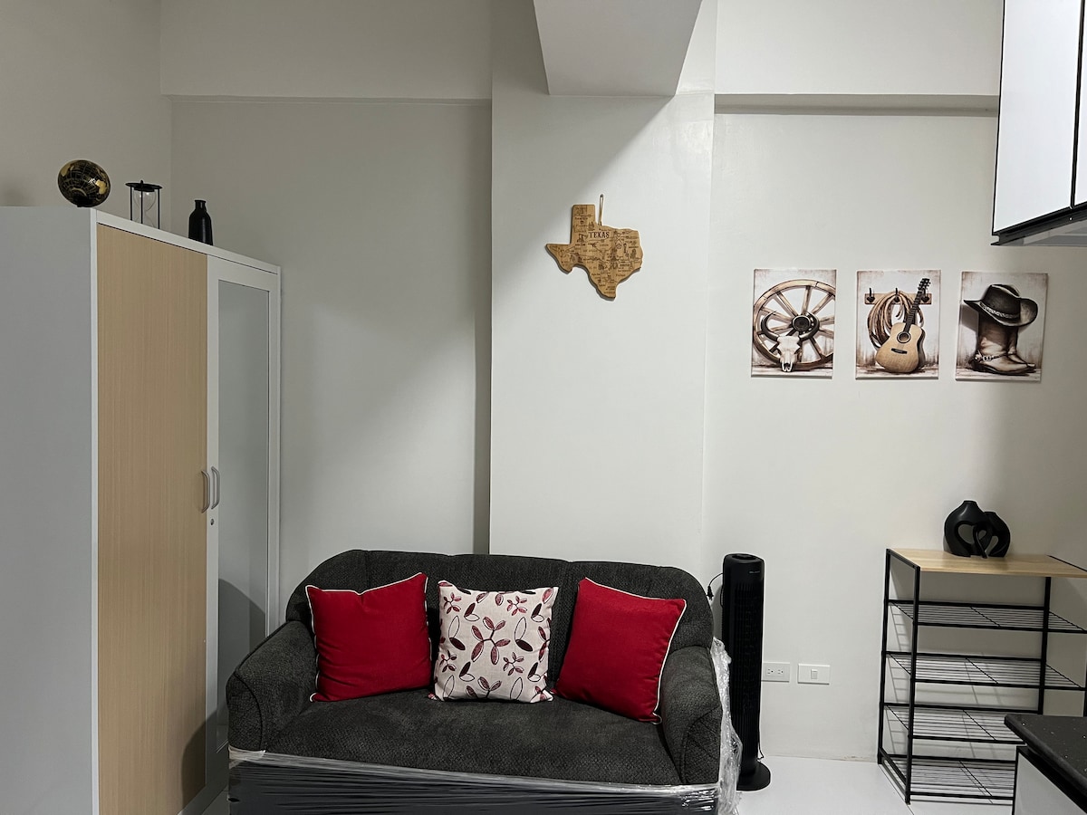 Check out the vibe and enjoy your staycation in this newly renovated 1-bedroom condo unit located in 4th floor of Residencia Magayon, surrounded by famous landmark in Naga City like Mother Seton Hospital, MPlaza, Robinson's Mall, S&R, Landers and other great places. The unit can comfortably accommodate 4 guests only.