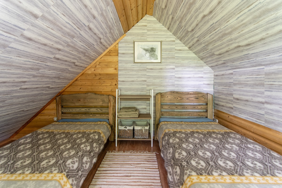 Suitable for four people, a couple or a family of four. Swimming and fishing in a private pond, barbecue, walks in the forest. Possible to add 5th bed for extra fee FOR THE ADDITIONAL FEE: Jacuzzi 50 eur / 3 hours, 70 eur / all day Traditional lithuaninan sauna ritual 250 eur / 2-8 persons, duration 3-4 hours Bicycle rental 5 eur / pcs. More about us you can find paliekys. LT