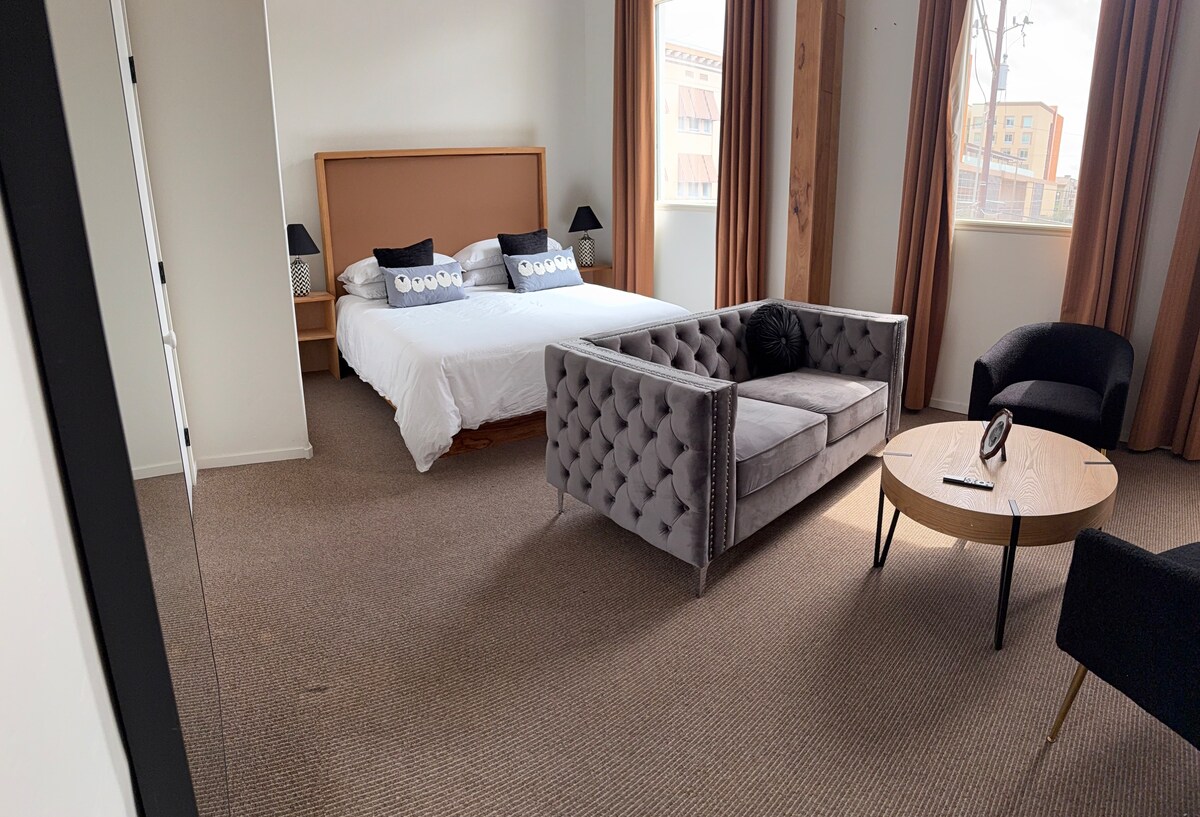 This stylish boutique hotel is perfectly located in the heart of Downtown Tucson, walking distance from the Fox Theater, convention center, restaurants and bars and the street car. This beautiful historic building has been transformed into a contemporary boutique self check-in hotel with an upscale cocktail bar. The rooms have 14ft ceilings and are tastefully renovated. King sized bedrooms with small lounge area and coffee making facilities. It’s the perfect destination for a downtown stay.