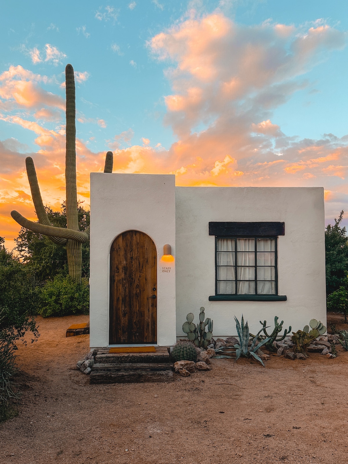 Welcome to the Yucca Room—a quiet desert retreat within JTH Tucson, a 7-room inn. Tucked against the west side of Saguaro National Park, this private suite offers a peaceful base to slow down, reflect, and connect with the beauty of the Sonoran Desert. This is a lower-level room featuring a king bed, private bathroom, fireplace, kitchenette, private patio, and TV. Ideal for up to two adults and one infant—this space blends handcrafted details with the warmth and quiet of desert life.