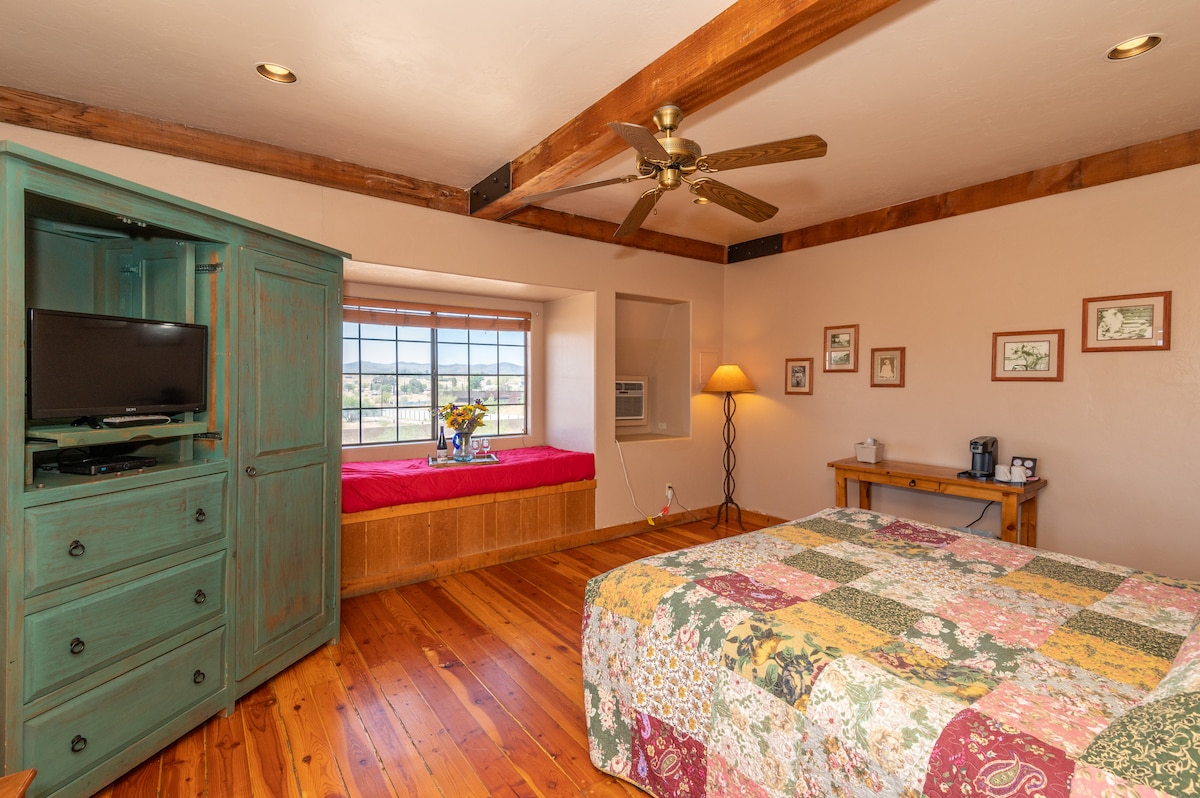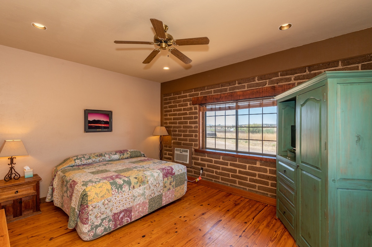 Priced to include cleaning fees, this unique AirBNB property sits on the main street of Patagonia and is right across from the park with great access to The Patagonia Lumber Company as well as other long time, popular Patagonia businesses. Suite #4 features a queen bed, private bath and private exterior entrance facing the north yard. Each suite shares access to a chef’s kitchen and laundry as well as a spacious backyard and bicycle storage.