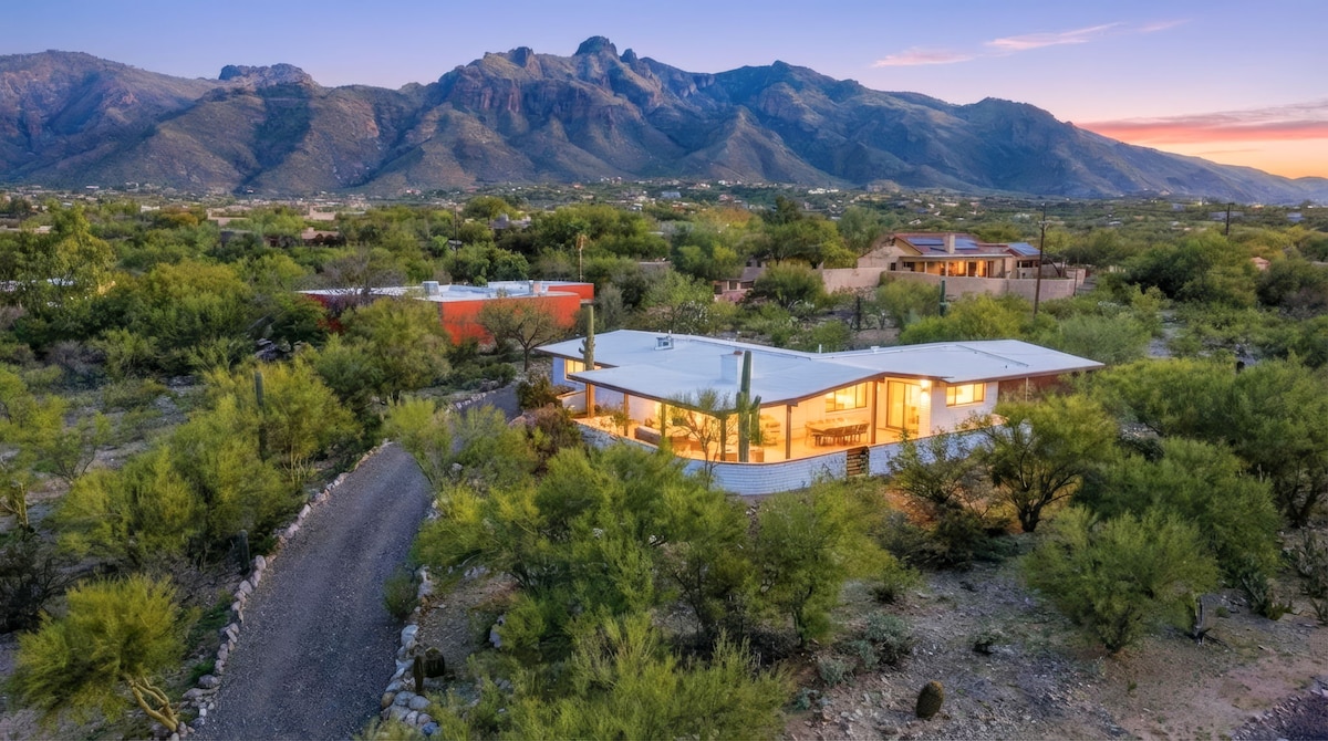 **Free pool & spa heating included in all stays!** Welcome to Hacienda Riad: a unique fusion of Sonoran and Moroccan design. 16 mins to University of Arizona 25 mins to Downtown Tucson 27-37 mins to Saguaro National Park (West/East) The house is located in a quiet neighborhood in the foothills of the Catalina Mountains surrounded by native desert landscape. The home is perfect for relaxation by the private pool and has numerous luxurious touches while being comfortable, unique & casual.