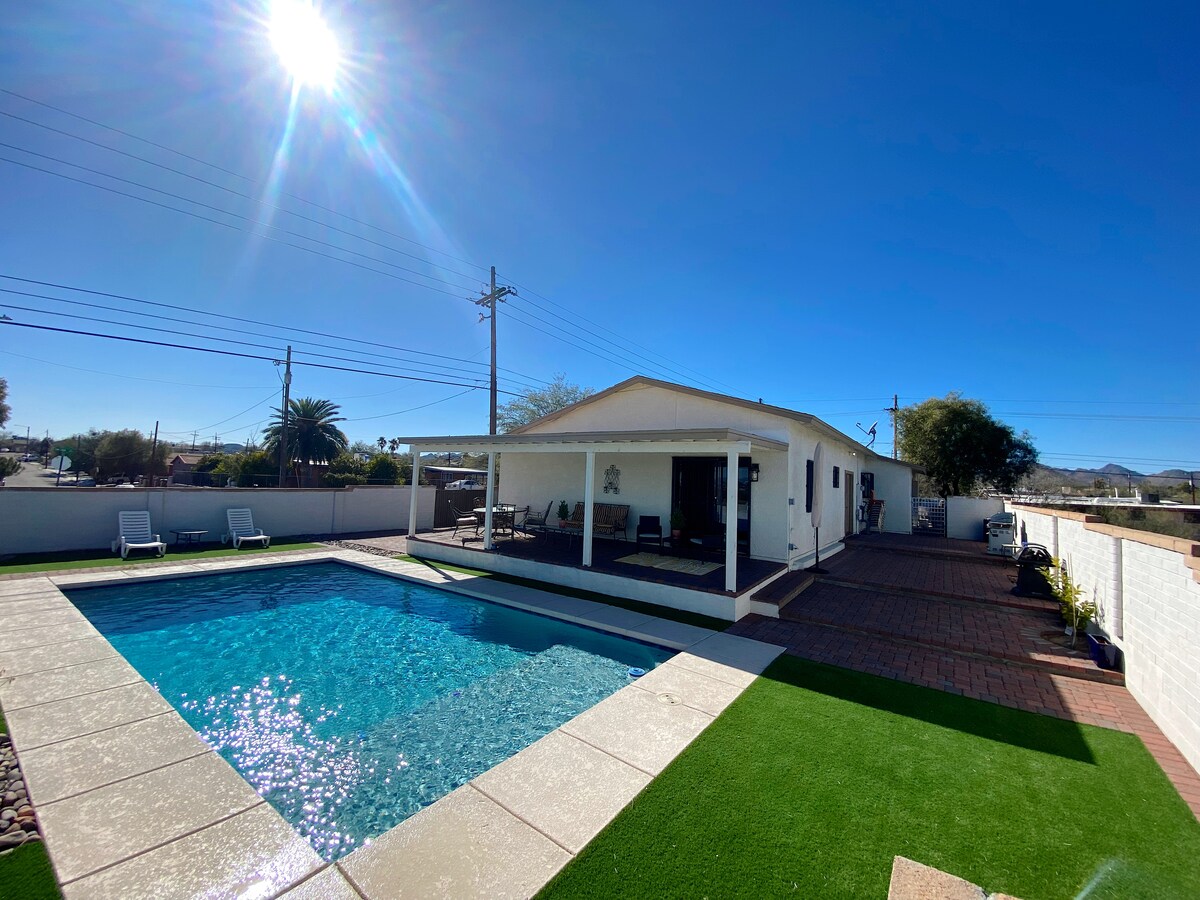 Midtown Historic 1946 adobe home with vibrant Mexican style colors and decor. Modern amenities including ductless ac/heat, and full kitchen with new appliances. Cal king bed and two twin beds all w/ memory foam. TV’s in all rooms. Board games and some DVD’s provided. Unique outdoor bathroom IS the second bathroom. Plenty of parking space for RV or trailers. Sorry, no weddings or events. Arizona TPT License # 21330071