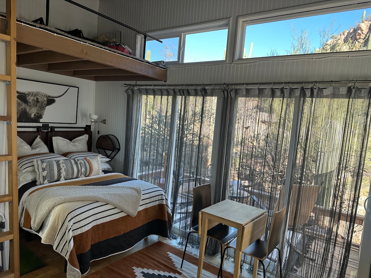 This home is located in Historic Barrio Hollywood, one of tucson's oldest neighborhoods! 5 minutes from Downtown Tucson, 7 minutes from the university, within easy walking distance of the River "Loop" bike path and right off I-10 for easy travel. This 350 Sqft Casita is ideal for the modern minimalist and acts as a peaceful homebase for your visit. Wifi 6, smart tv, induction cooktop/ kitchenette and expansive backyard are all included to make for the most comfortable stay in our charming city.