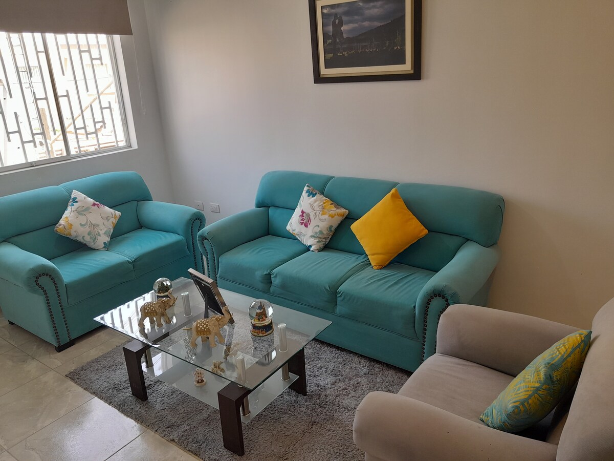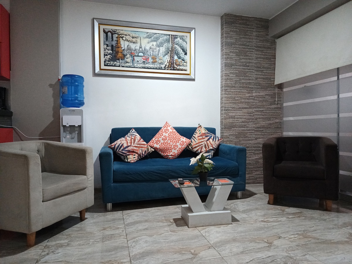 Welcome to your peaceful home in Chiclayo! This stylish first-floor apartment is quiet and secure. Enjoy filtered water, fast internet, smart tv w/ local channels and Netflix, hot showers, A/C, and modern extras like a dishwasher, clothes washer, dryer, and microwave. The building has 24/7 guarded access, and there are no stairs to climb — perfect for families, seniors, or anyone who values comfort and convenience. You’ll feel relaxed, safe, and right at home from the moment you arrive.