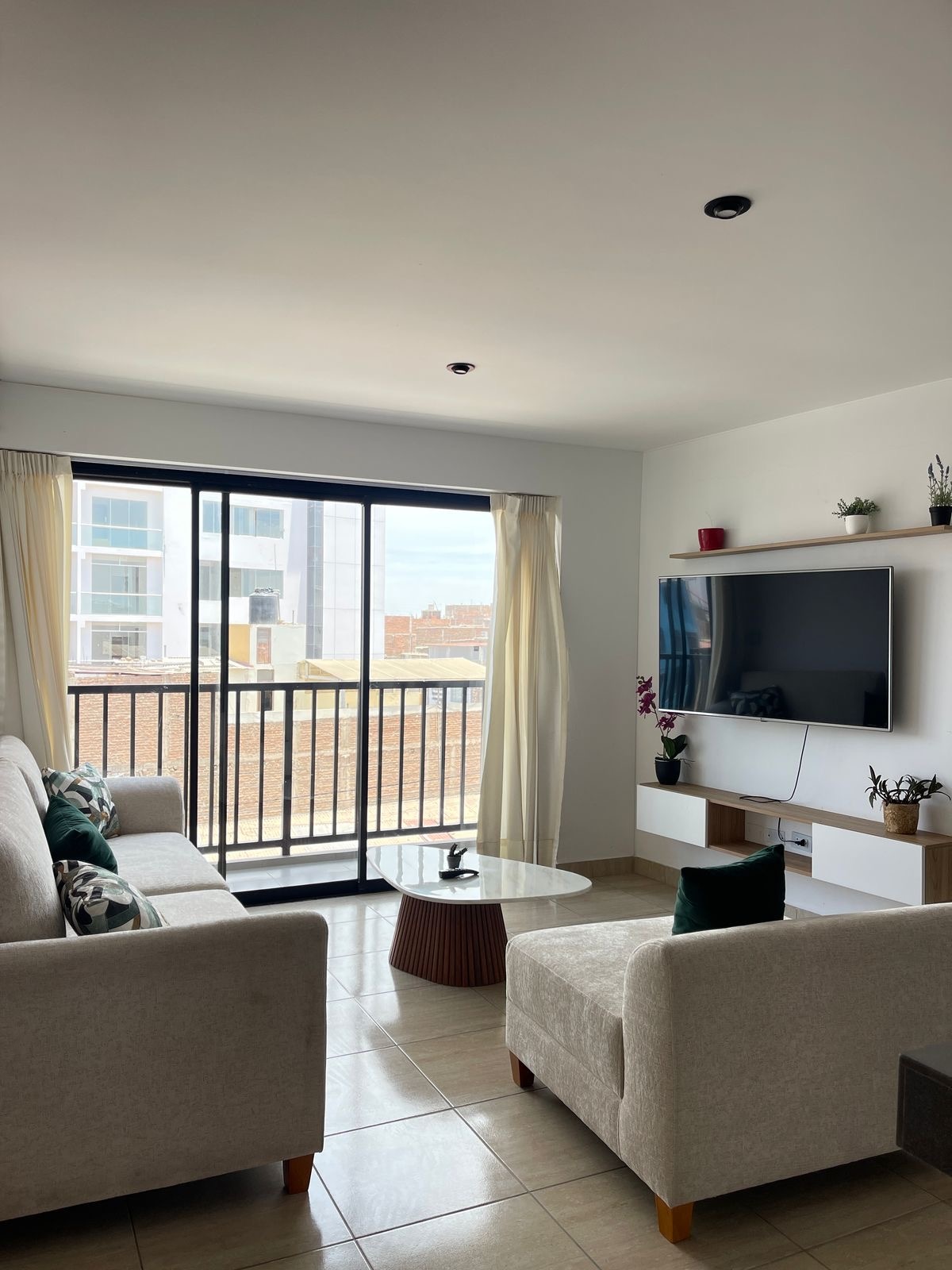 Bienvenid@ a nuestro apartamento en Chiclayo – La Victoria. Estamos ubicados en una de las zonas más bonitas y seguras de Chiclayo. A 5min del aeropuerto, del Real Plaza y del centro de la ciudad, a 2 cuadras del Jockey Club y a pocos pasos del Smart fit y los mejores restaurantes. Contamos en la habitación con una cama Drimer QUEEN. Tendrás acceso a Wi-Fi, en la sala contamos un Smart TV y Netflix. La cocina equipada y vajilla completa. Estoy para ayudarte en lo que necesites. Te esperamos!