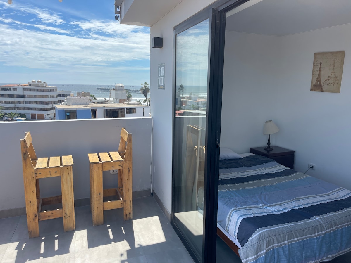 Habitación de estreno, acogedor, cuenta con un frigobar, baño propio y una increíble vista al mar. Nos encontramos a una cuadra de la playa, con accesos muy cercanos a restaurantes, incluso en el primer piso tenemos nuestro local de comida que pueden ordenar y les subimos a la habitación su pedido sin necesidad que tengan que bajar.