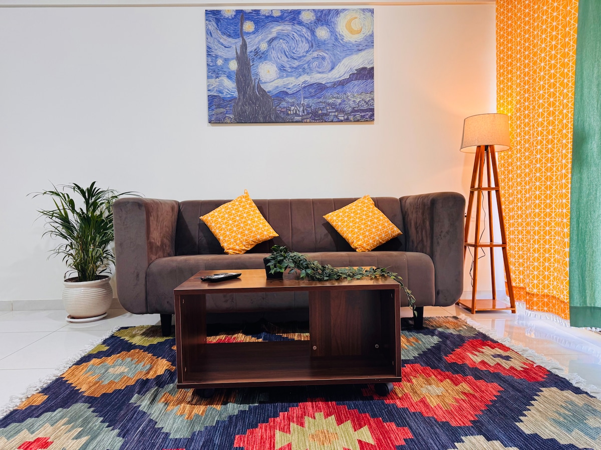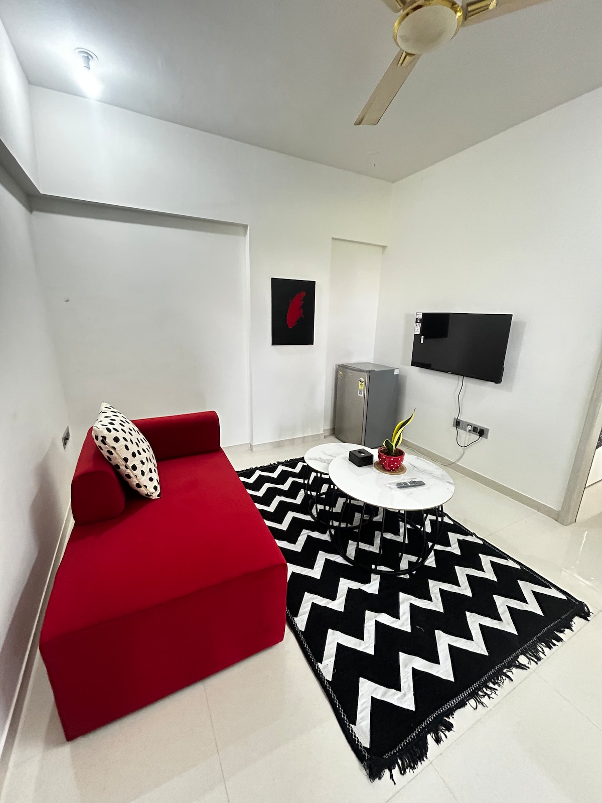Wake up to stunning sunrise views at The Cozy Cove, a serene retreat in Pune’s Blue Ridge Township. This modern, fully-furnished apartment features a cozy sofa cum bed, a restful bedroom with soft linens, and elegant interiors designed for comfort and style. Enjoy Netflix and chill nights on the smart TV, a serene balcony setup, and a sleek modular kitchen equipped for all your needs. Perfect for couples or small families, it’s a peaceful escape with all the conveniences of home.
