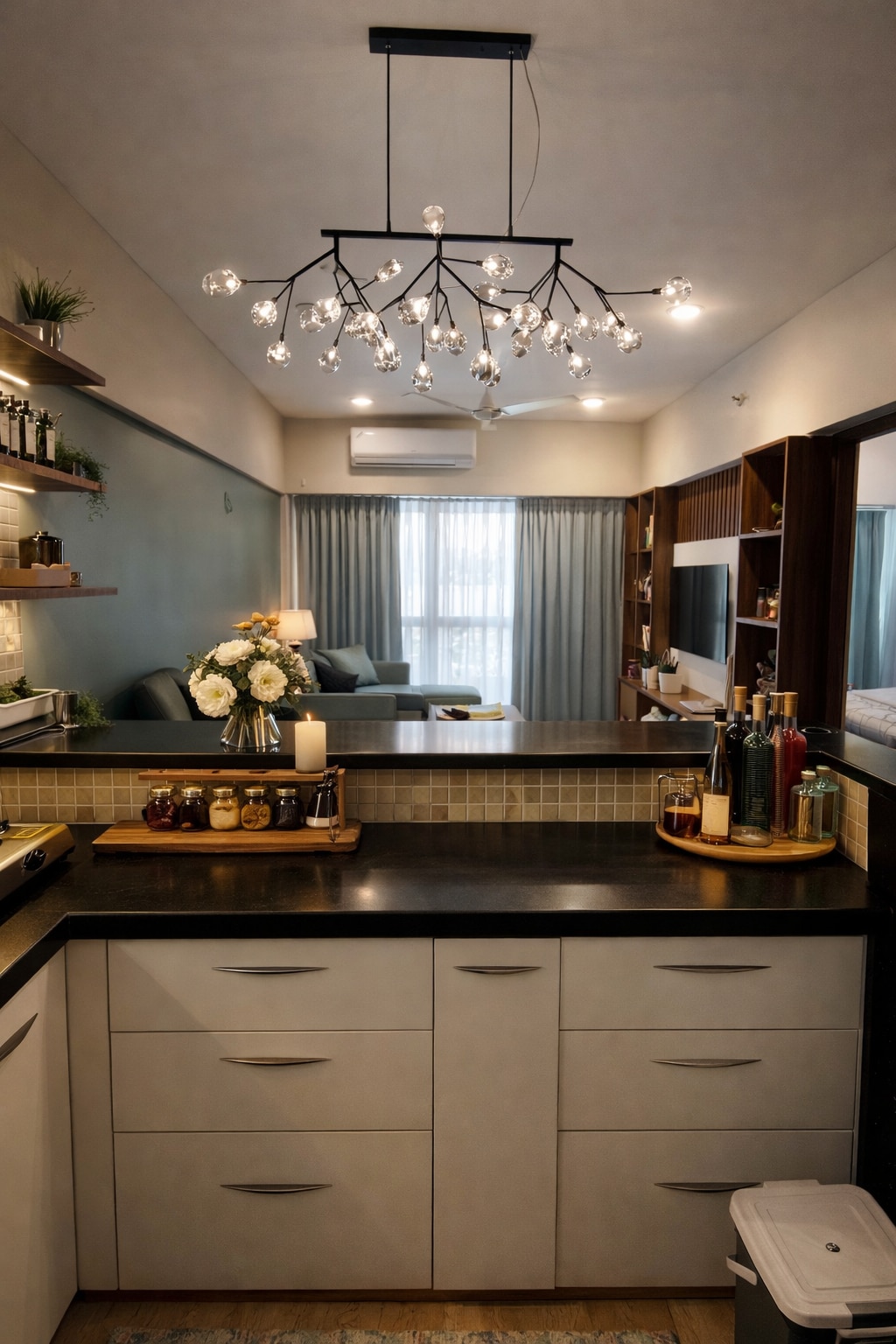 Wake up to stunning sunrise views at The Cozy Cove, a serene retreat in Pune’s Blue Ridge Township. This modern, fully-furnished apartment features a cozy sofa cum bed, a restful bedroom with soft linens, and elegant interiors designed for comfort and style. Enjoy Netflix and chill nights on the smart TV, a serene balcony setup, and a sleek modular kitchen equipped for all your needs. Perfect for couples or small families, it’s a peaceful escape with all the conveniences of home.