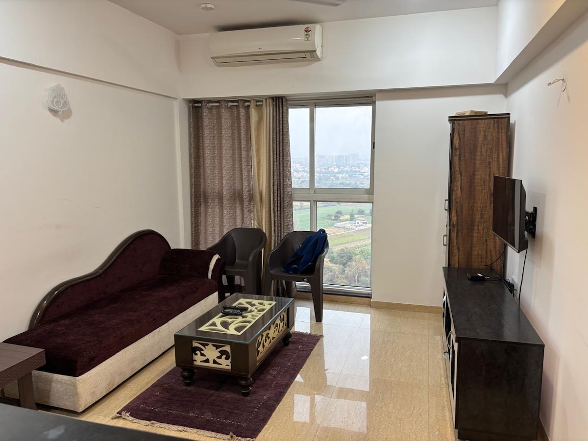 Located in Lodha Belmondo Golf Resort, we offer our WiFi enabled, well-furnished, super clean 450 sq feet flat. Our balcony offers breathtaking views. Our well-appointed flat offers all modern day comforts (well-equipped kitchen, Smart TV, 2 ACs and a washing machine). A 9-hole, par-27 Golf course is within Lodha Belmondo Golf Resort complex. It is accessible on chargeable basis. Non Golfers can enjoy the free walks around the course and the Pawana riverside promenade.