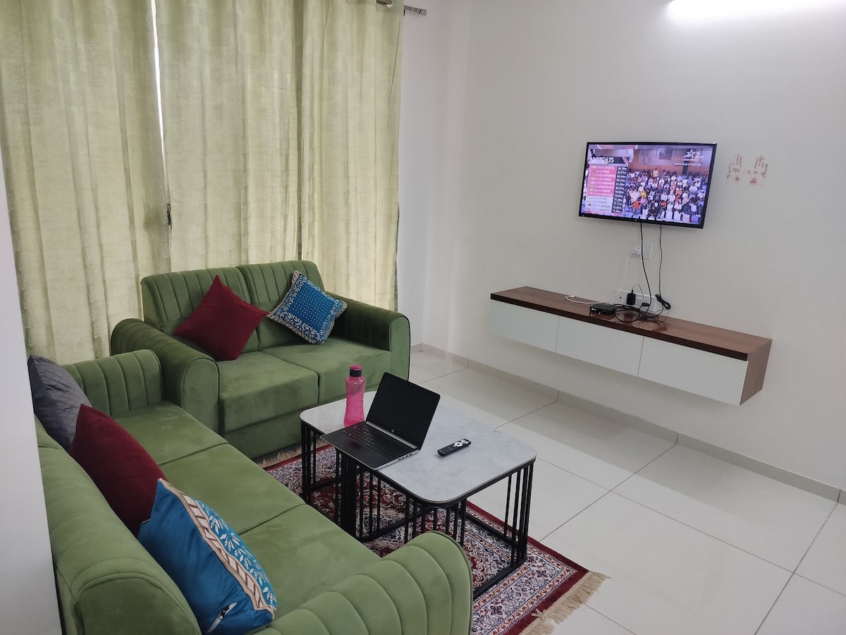 A lovely space to unwind and relax after a busy day.Awake refreshed and ready for a day exploring Nature via this clean, sunny apartment with impressive views. Head out and wander through the nearby river & Golf course and pick up local ingredients to later craft a meal in the fully stocked kitchen, This modern, sun-drenched apartment offers a tranquil residential vibe alongside quick, easy access to Nature & Luxury, with unique Lights. High Speed Wifi, Free Parking & Leading OTT Subscription.