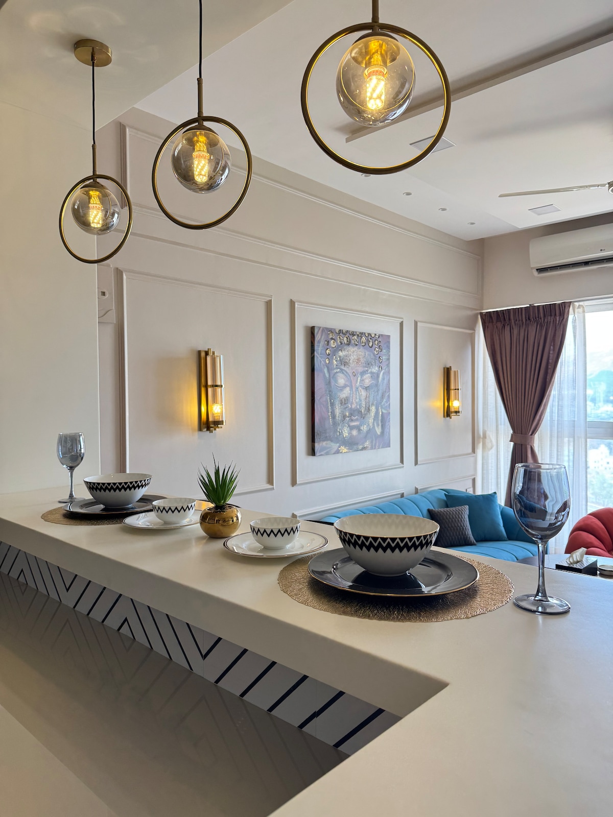 A place you will never forget for its beauty and scenic view. The flat is on the 19th Floor with the Golf view in front. Balcony in the hall and french windows in the bedroom is all you need to get mesmerized by the greenery you will witness. The flat itself is comfortable with a queen bed in the bedroom and a comfy couch in the living. Evenings, you have a choice of warm lighting or bright white lights.
