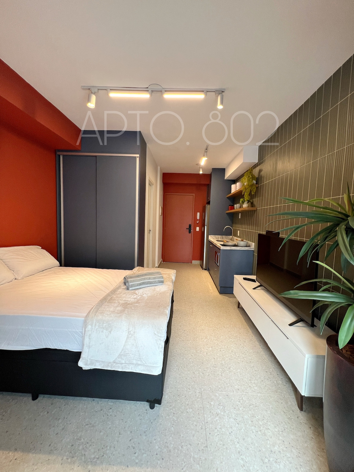 Apartamento tipo estúdio à 30 metros do metrô Luz com mobília completa. Novo e moderno com ar condicionado, TV, cozinha completa, sacada,roupas de cama e banho ,localização no coração do centro histórico de São Paulo. Caminhe a pé até Rua 25 de março, Rua das noivas, pinacoteca e mercado Municipal,portaria 24horas, piscina e academia. Melhor opção de estadia na região. Base policial em frente ao condomínio garante a segurança das pessoas que transitam na rua do apartamento.