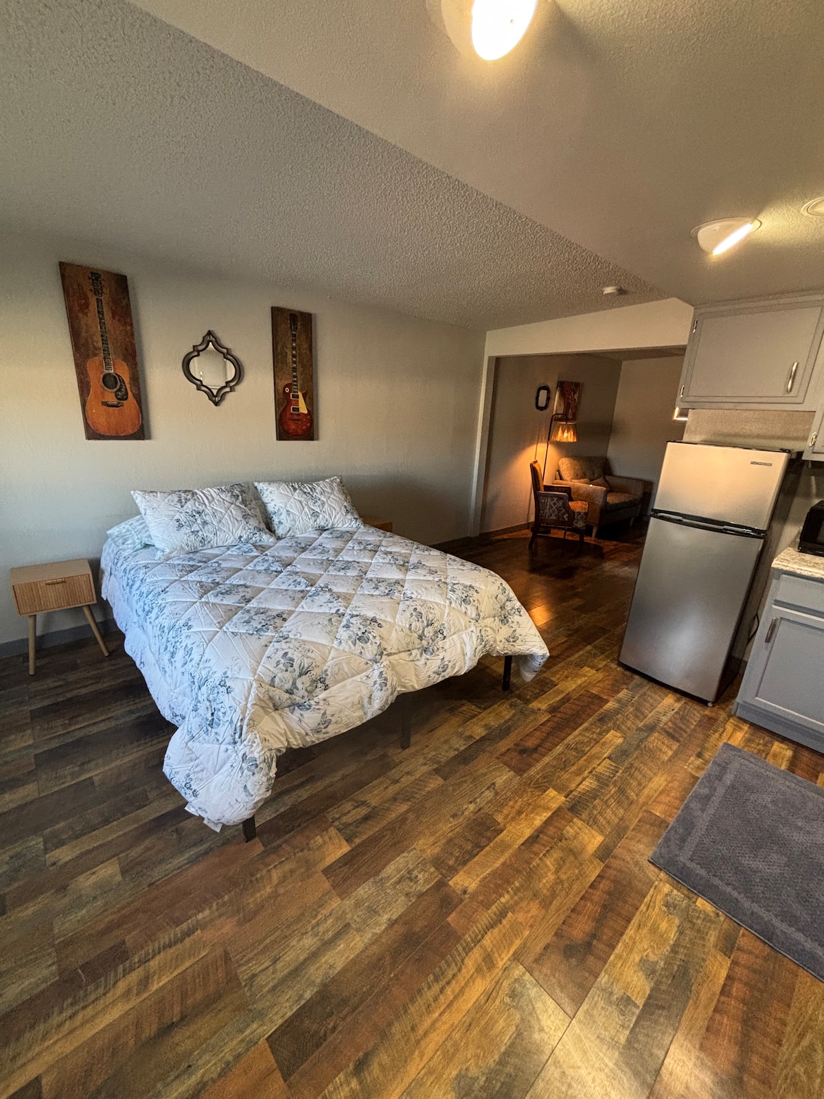 Cozy, Clean & Sleek studio w/ 1 QUEEN BED, kitchen & full bath. Recently redecorated with a Modern Industrial aesthetic. Comfortable desk, super fast WiFi & smart TV. Located in an up & coming urban area, please note there is foot traffic & numerous dogs in the neighborhood. Light sleepers may not do well. This property cannot be used for purposes identified in the City of Phoenix Ordinance Section 10-195(c). The City of Phoenix short-term registration number for this property is 2020-0662.