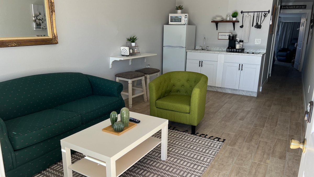 A little out of the way, not too much. Located between Phoenix and Tucson. A cozy studio apartment with a farmhouse feel. A fully stocked kitchen awaits our guests. A complimentary coffee spot for that first morning necessity. A queen size memory foam mattress in the bedroom. A futon for children. A pack-n-play for infants or toddlers. Sanitized for your peace of mind. A perfect and convenient getaway surrounded by our beautiful desert.